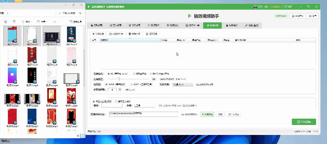 提供按质量(CRF)、码率或分辨率压缩三种模式,支持 H.264/H.265 编码,可调节压缩质量和编码速度,在保证画质的同时大幅减小文件体积,解决大文件上传慢的痛点。