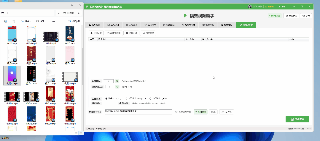 支持按数量平分或按时长分割视频,可自定义序号格式(数字 / 大小写英文),批量生成分段视频,适配不同平台的时长要求。