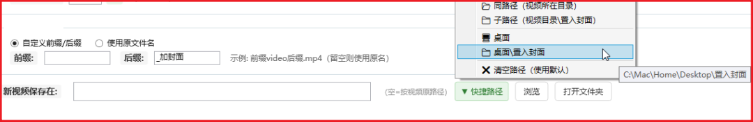 快捷路径:快捷保存到视频原路径、子路径、桌面、桌面子路径,文件管理更便捷。