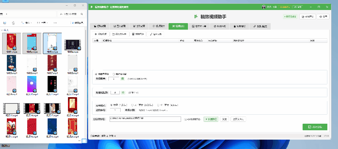 支持按数量平分或按时长分割视频,可自定义序号格式(数字 / 大小写英文),批量生成分段视频,适配不同平台的时长要求。