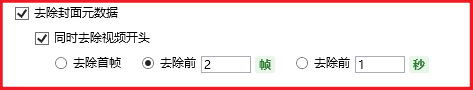 在「去除封面元数据」选项中:可实现去除视频原来的封面和片头,支持按帧按秒或仅去除封面等多种选项,来实现更换视频封面的功能,可按需选择。